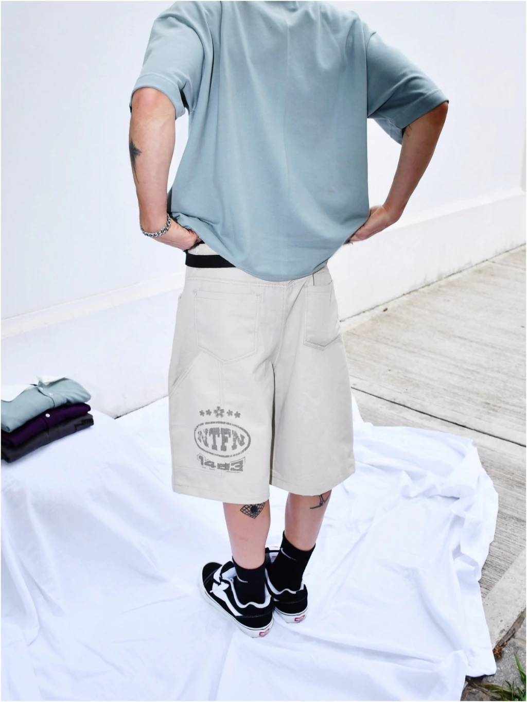 Bermuda de gabardina tipo carpintera. Corte baggy por abajo de las rodillas. Estampado en serigrafía.