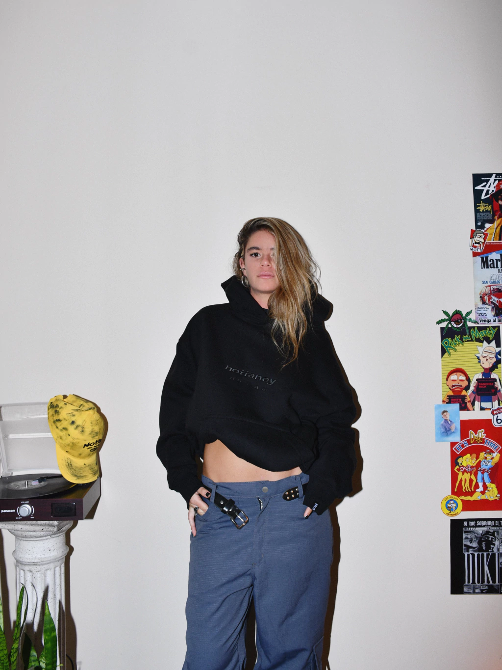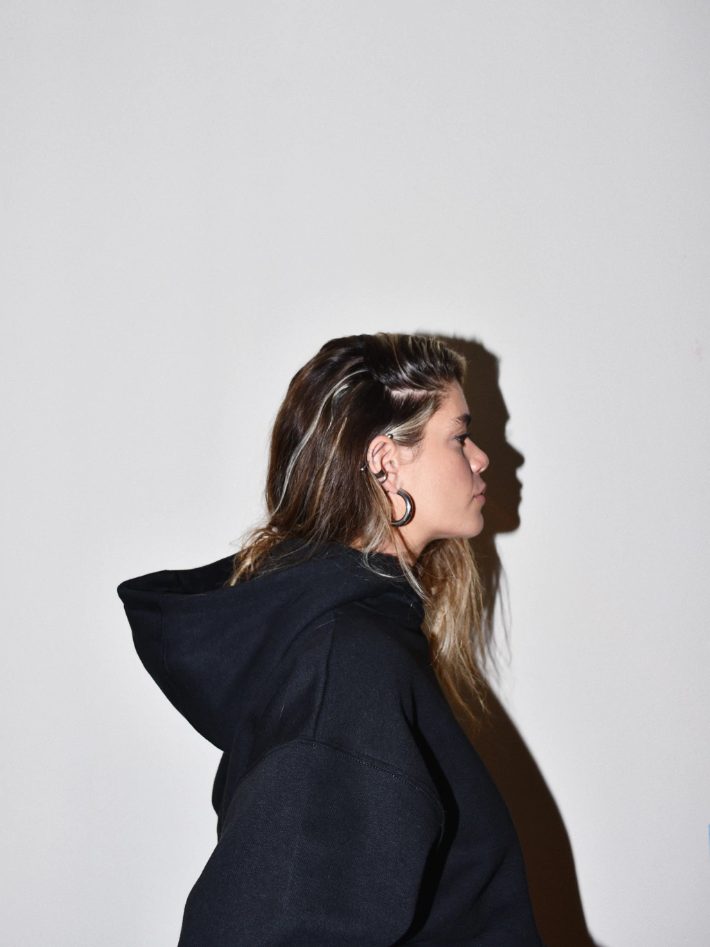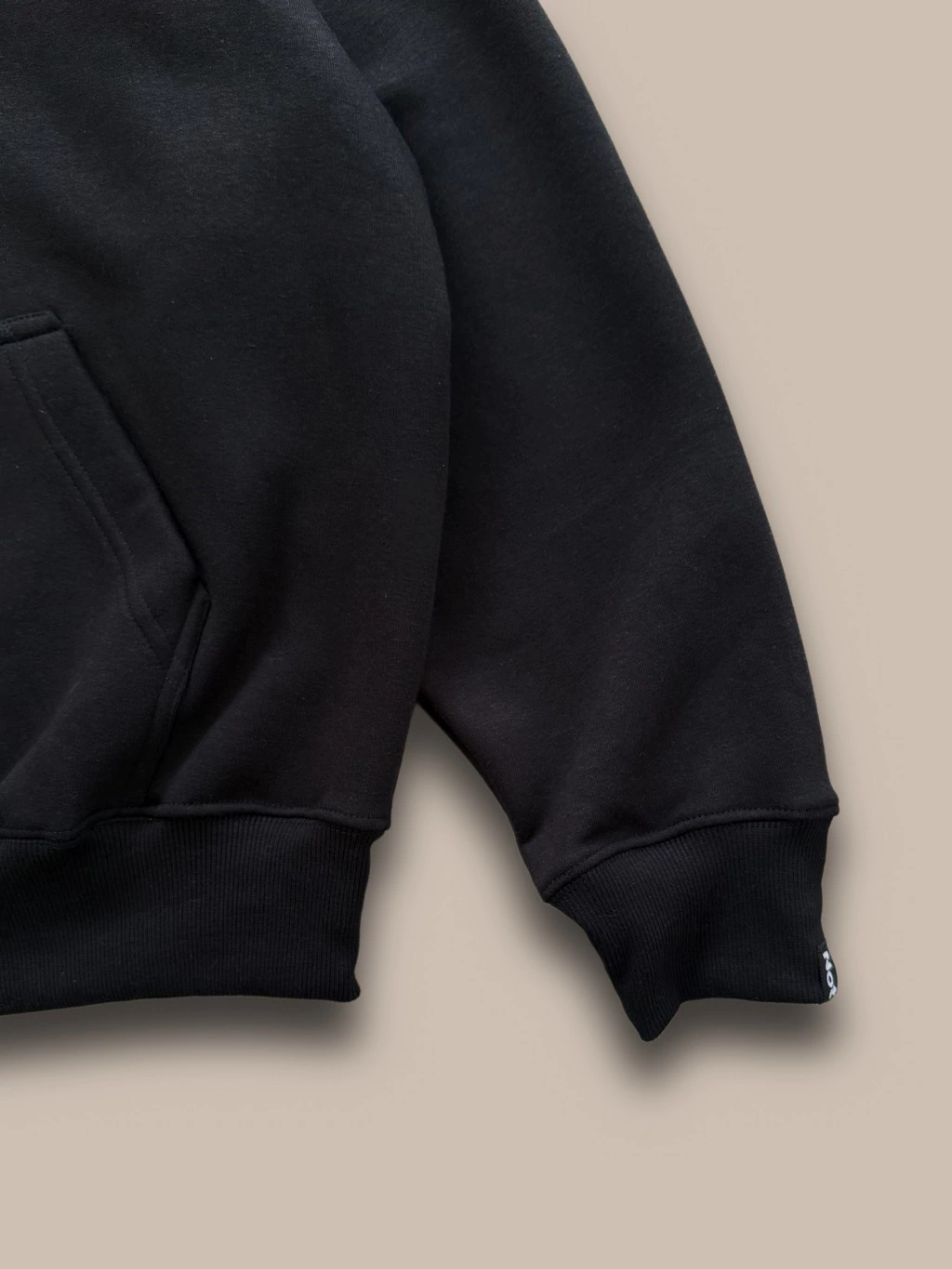 Buzo bordado básico para bancar el invierno. Corte oversize sin exagerar con el largo, un toque abajo de la cintura. Mangas y capucha grandes, esta última hecha en 3 paneles y doble friza. Tela de friza de algodón peinada, bien pesada.