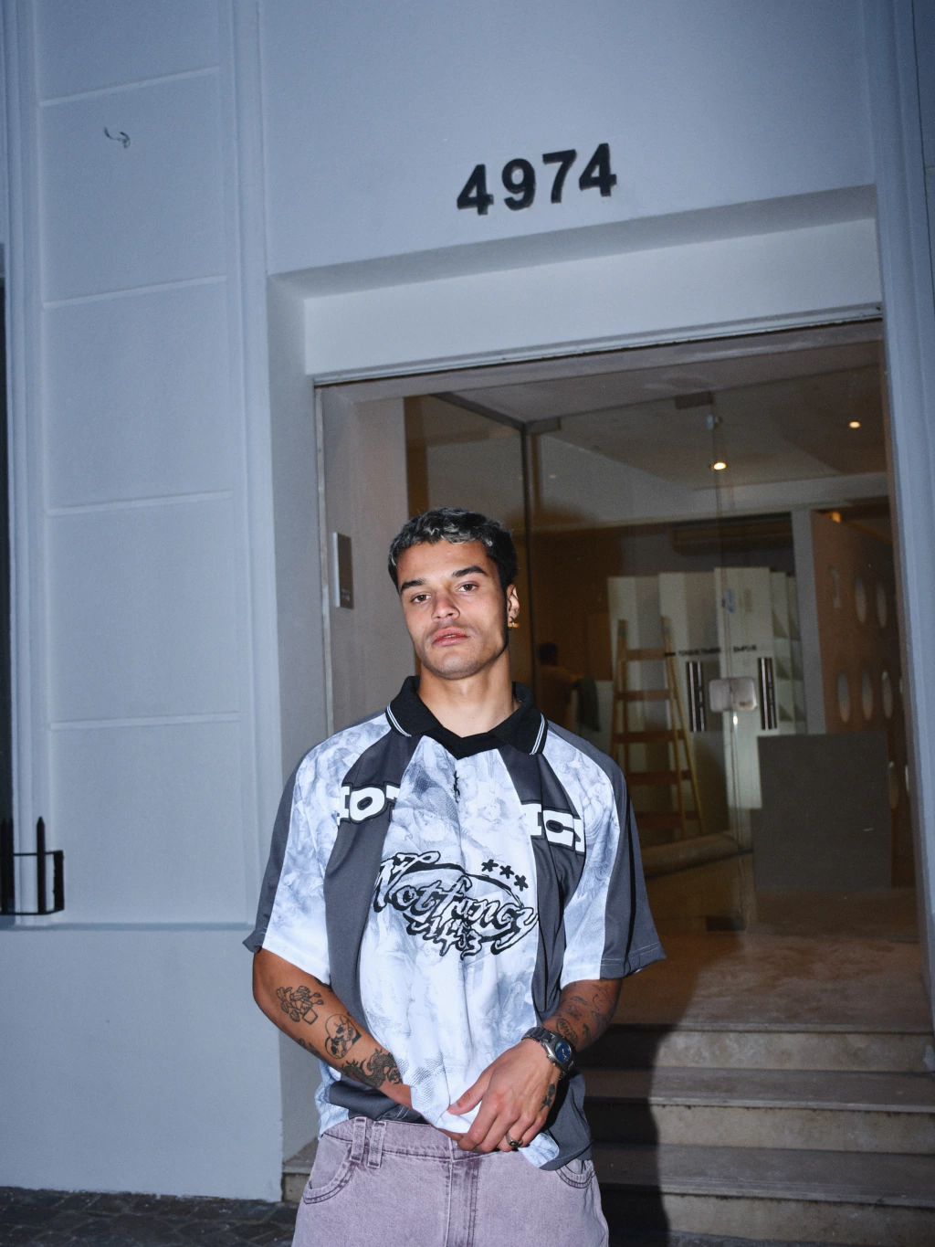Rulo mide 1.75 y está usando un talle L.