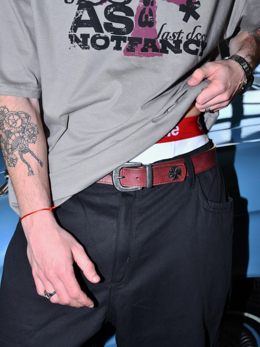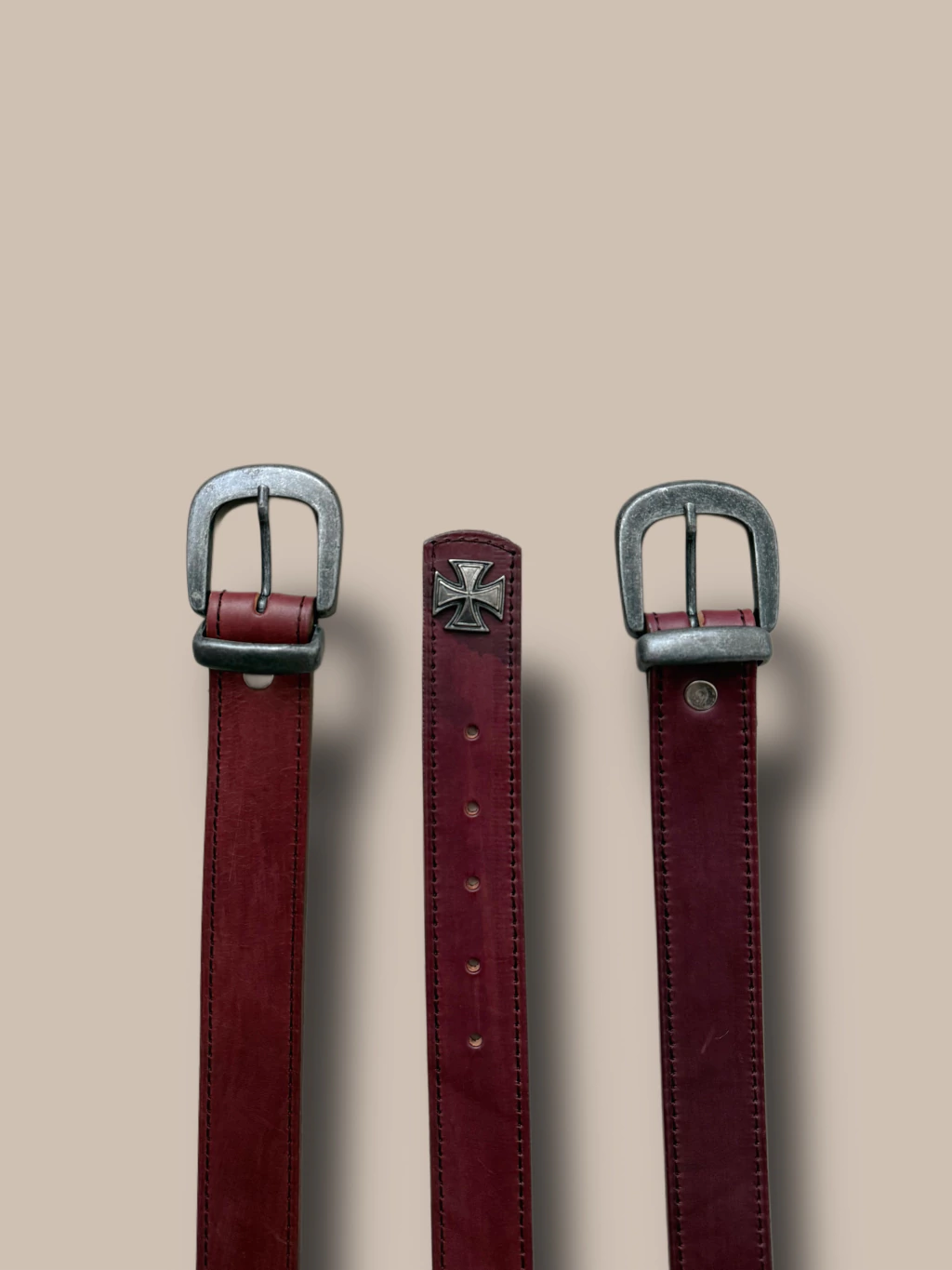 Cinturón de cuero vacuno. Herrajes en metal. Cada pieza tiene vetas distintas ya que es artesanal.