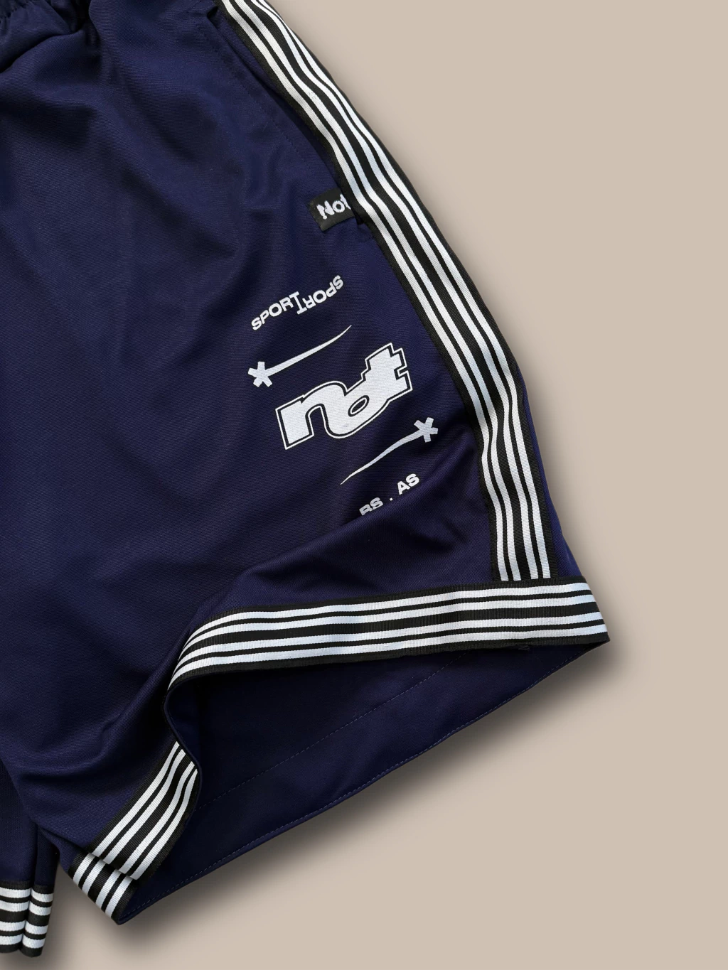 Short de tela deportiva pesada. Corte oversize justo hasta las rodillas. Estampado y tiras diseñadas por nosotros. Elastico en la cintura.
