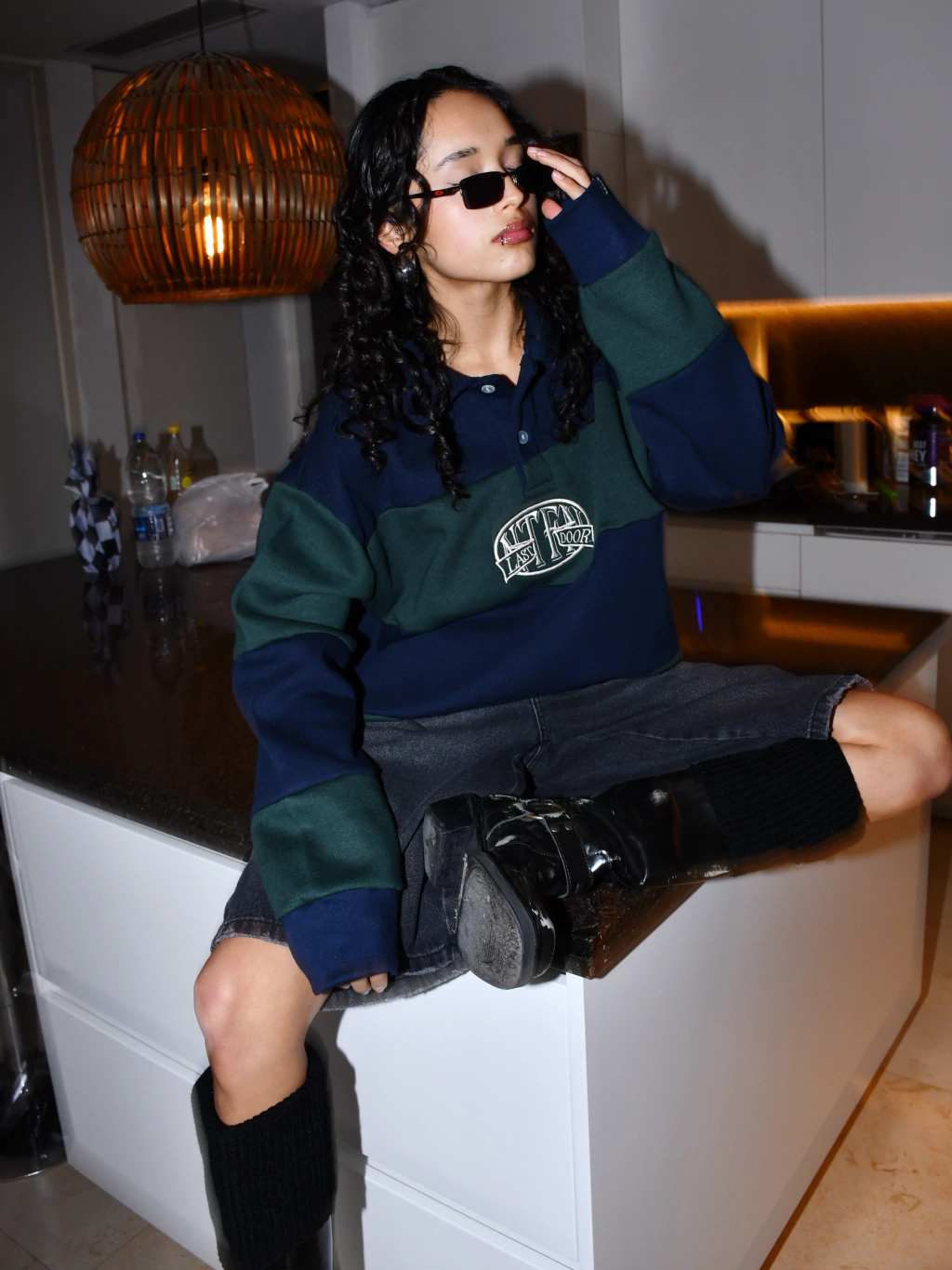 POLO o buzo tipo chomba hecho con friza peinada. Mas de 14 paneles forman esta pieza que depende como la uses puede ser la más prolija o la más trap.