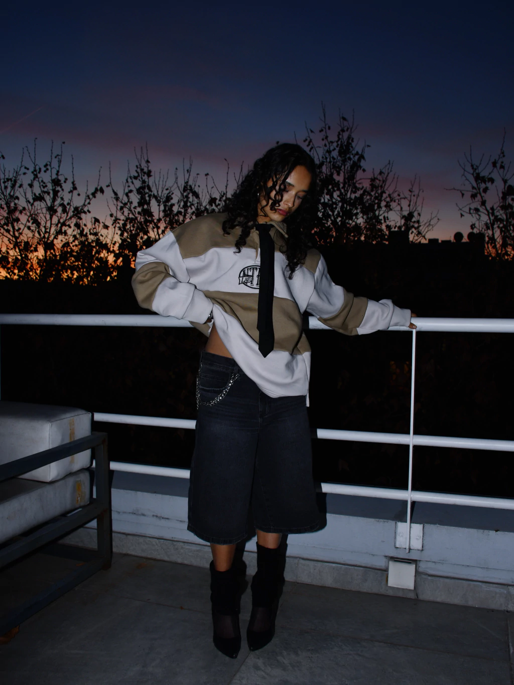 POLO o buzo tipo chomba hecho con friza peinada. Mas de 14 paneles forman esta pieza que depende como la uses puede ser la más prolija o la más trap.