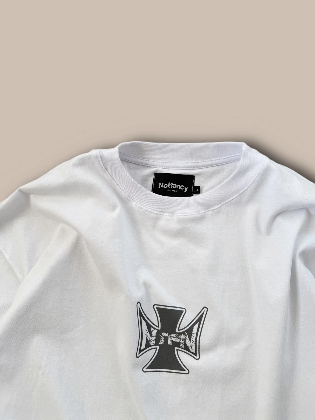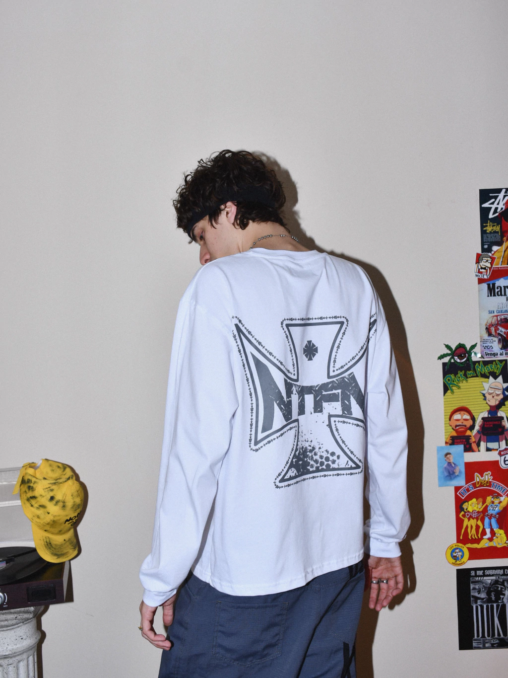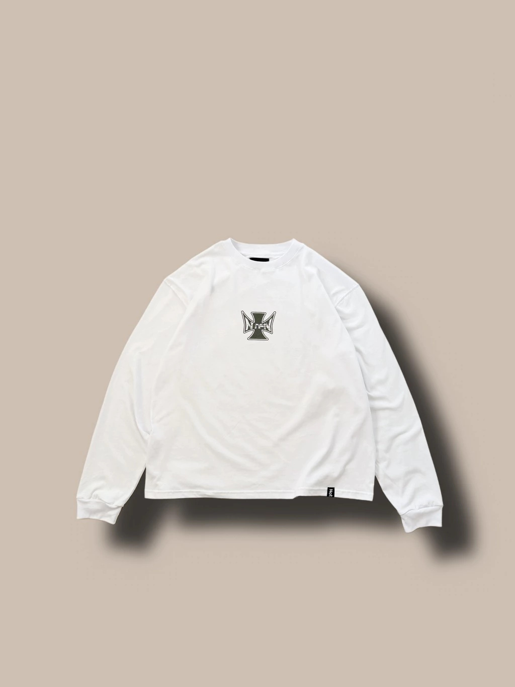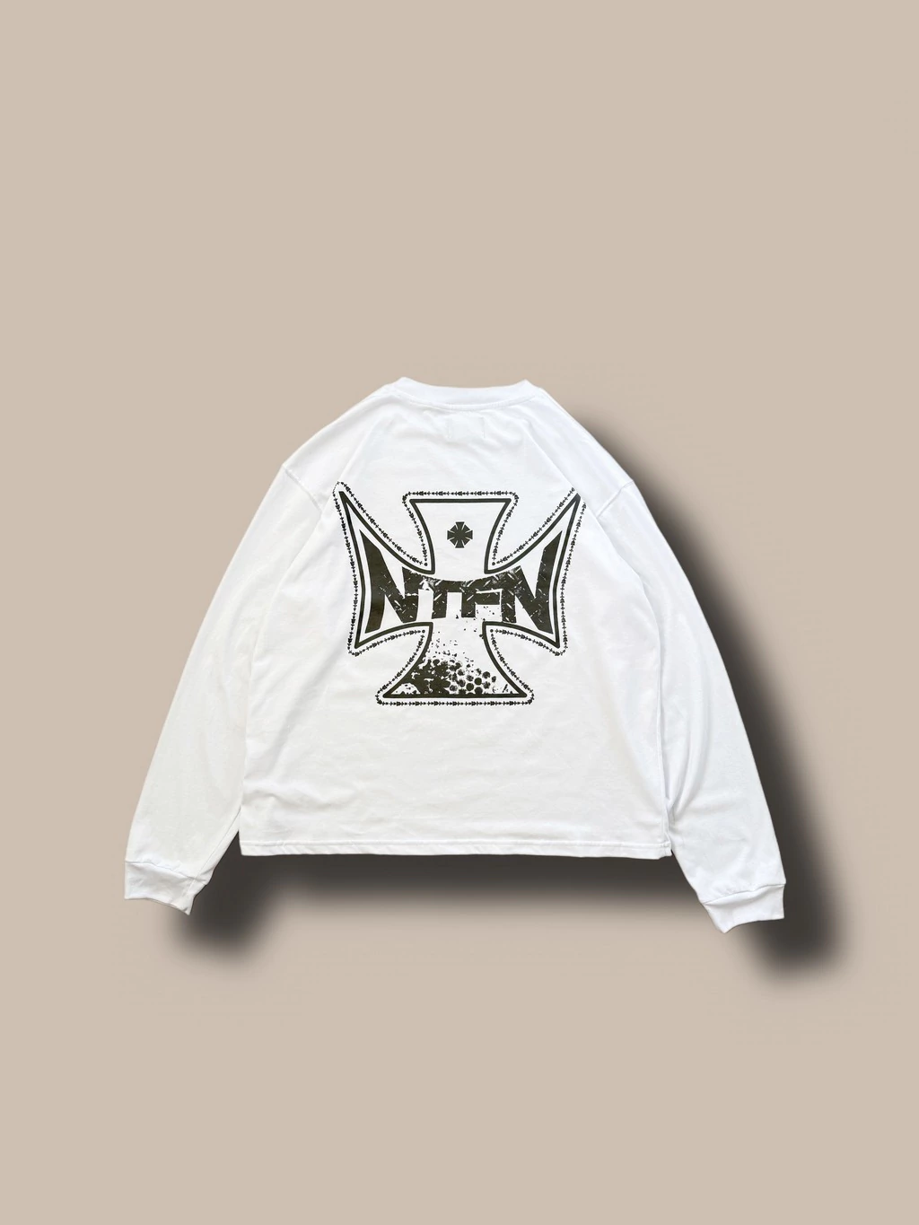 Remera manga larga de tela pesada de algodón 20/1. Molderia oversize, estampas en serigrafia en frente y espalda. Si te sacas el buzo tenes que estar preparado.