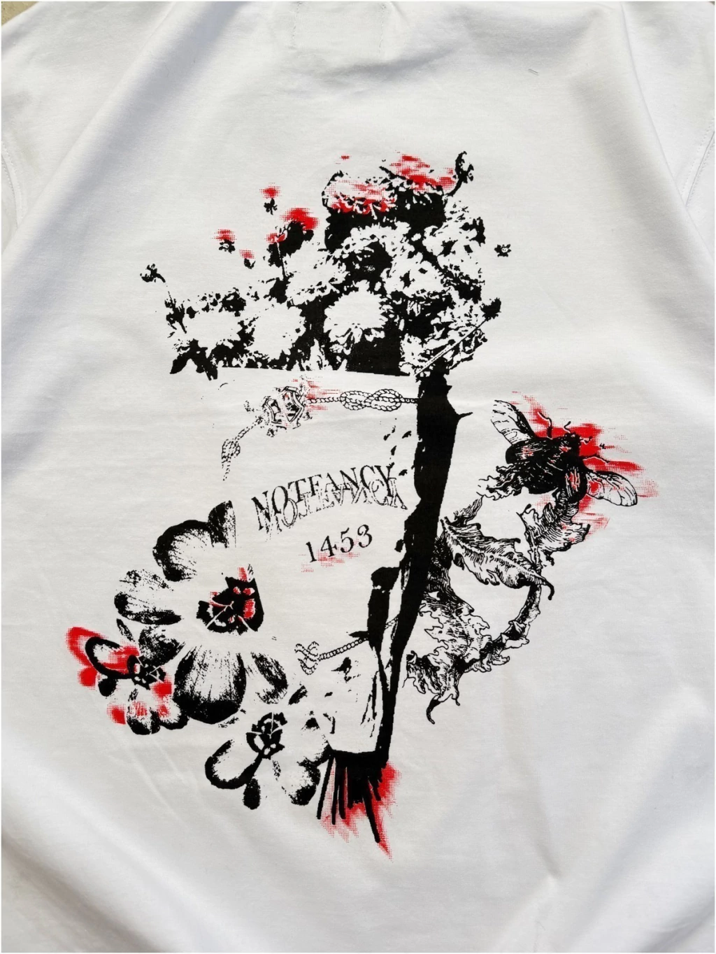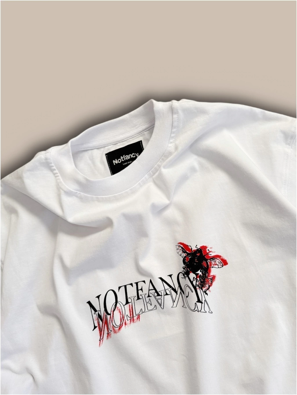 Remera color blanca estampada con serigrafía en frente y espalda. Corte oversize, cuello de rib bien cerrado, tela de algodon 20/1 pesada para un calce justo.