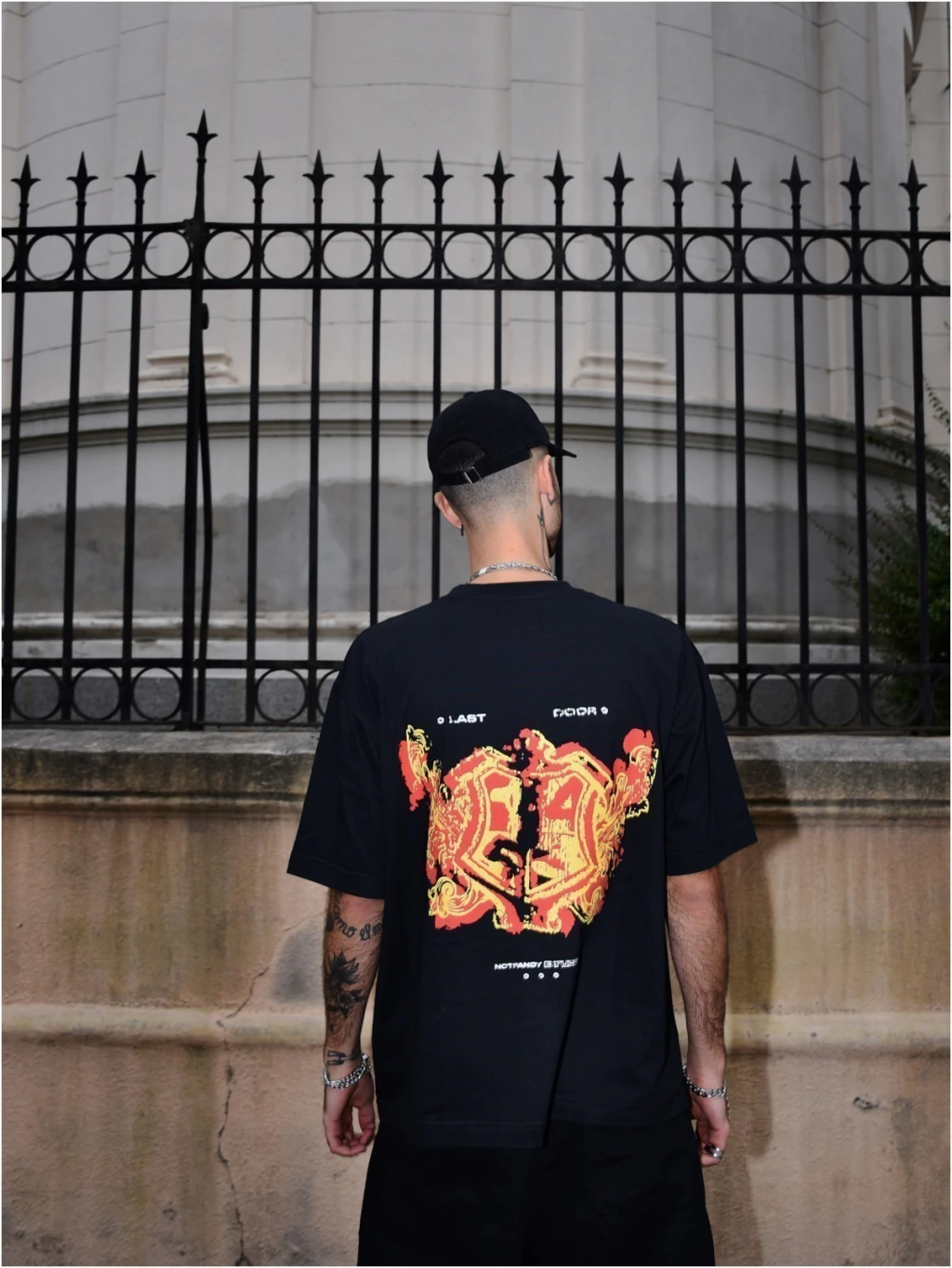 Remera color negro estampada con serigrafía en frente y espalda. Corte oversize, cuello de rib bien cerrado, tela de algodon 20/1 pesada para un calce justo.