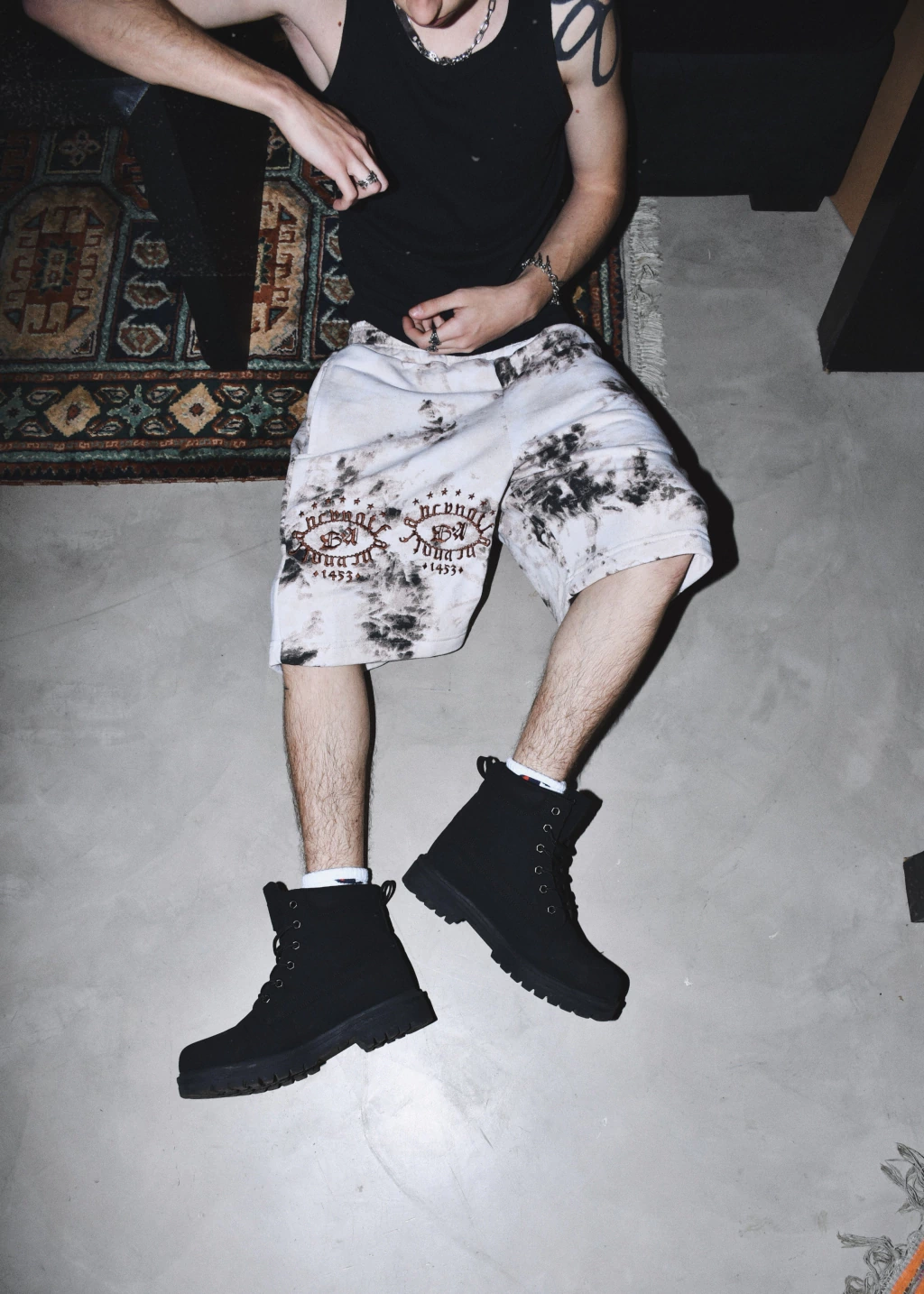 Short de algodón de friza. Intermedia en grosor, pero pesada en su justa medida para darle la caida necesaria. Corte oversize apenas por abajo de las rodillas. Bordado. Elastico en la cintura.